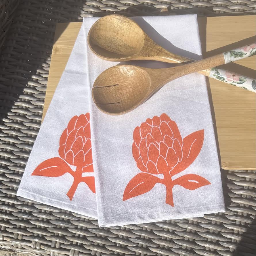 Tea towel - hand printed - protea